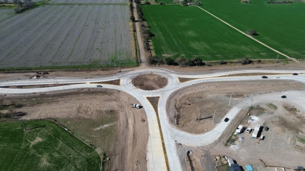 La obra de la rotonda de la Ruta Provincial N° 4 y la Ruta Provincial N° 80s, en el acceso a Progreso, comenzó en diciembre de 2024, presenta un 95 % de avance de obra y el gobierno provincial invierte más de $ 5.900 millones para su construcción.