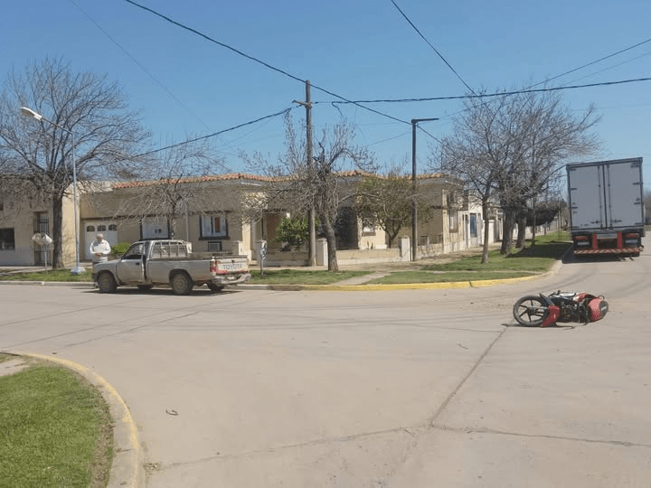 En la Intersección de calles 25 de Mayo y Sajaroff, una motocicleta marca Honda Biz en la cual se movilizaban una pareja mayor de edad, por causas que se tratan de establecer colisiona en la puerta izquierda del lado del conductor de una Pick-Up Toyota conducida por un masculino mayor de edad. La femenina y el conductor del vehículo de mayor porte fueron trasladados al Samco local y luego derivados al Hospital de la ciudad de Sunchales para su mejor atención donde se le diagnosticaron Lesiones Leves.