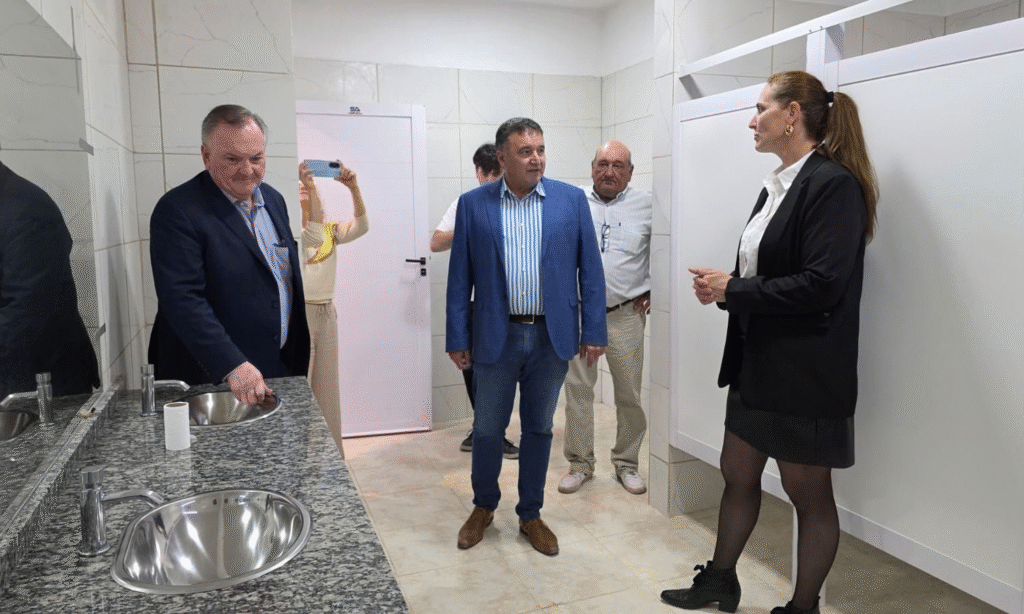 En primer lugar, las autoridades y los presentes visitaron el Club San Lorenzo para ver las instalaciones y la primera etapa de la construcción de los sanitarios.