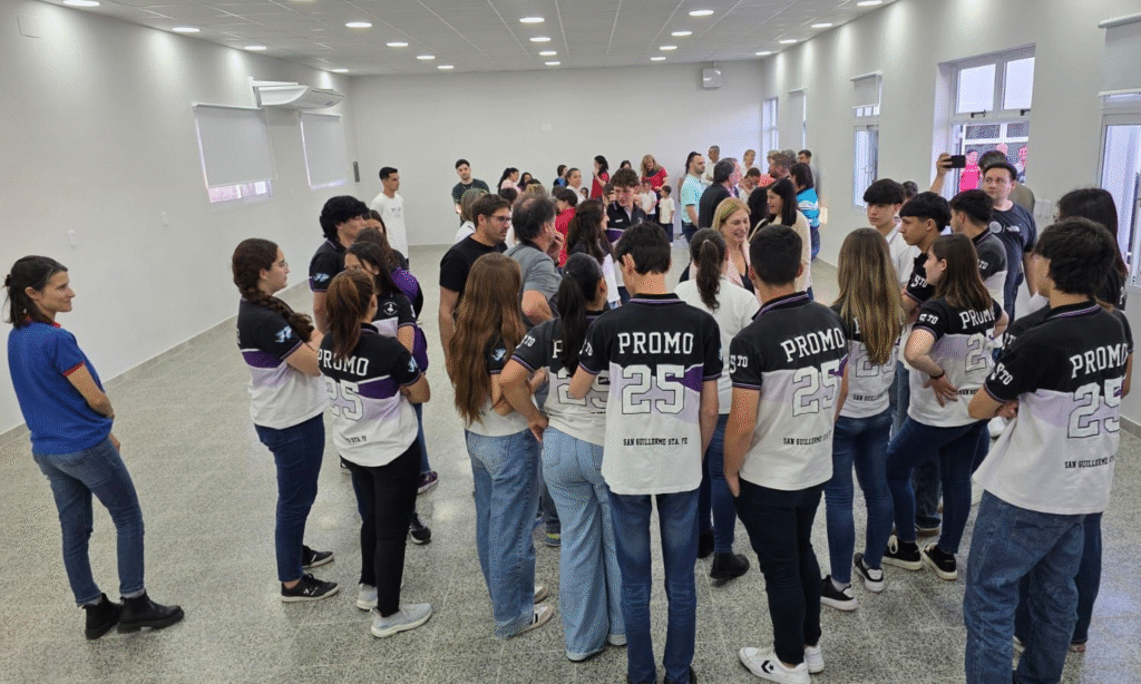 Durante el acto, se llevó a cabo la inauguración del nuevo Salón de Usos Múltiples (S.U.M.), “un espacio que constituye un hito para la comunidad educativa, ya que permitirá el desarrollo de actividades académicas, artísticas, culturales y de inclusión”, remarcaron la directora del secundario, al momento de agradecer a las autoridades presentes.