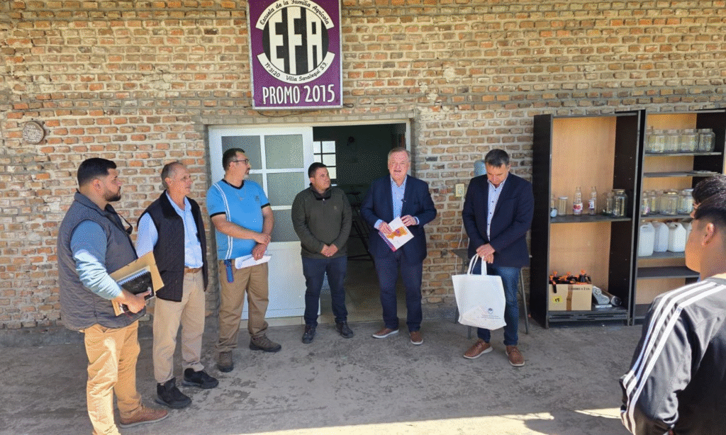El senador provincial Felipe Michlig, junto al diputado Marcelo González, el presidente comunal electo Jorge Piriz y el secretario comunal Mauricio Sandoval, visitaron la E.E.S. Orientada Particular Incorporada Nº 3120 “E.F.A. Villa Saralegui”, donde fueron recibidos por José Armando, director reemplazante, y Jorge Fain, integrante de la cooperadora escolar.