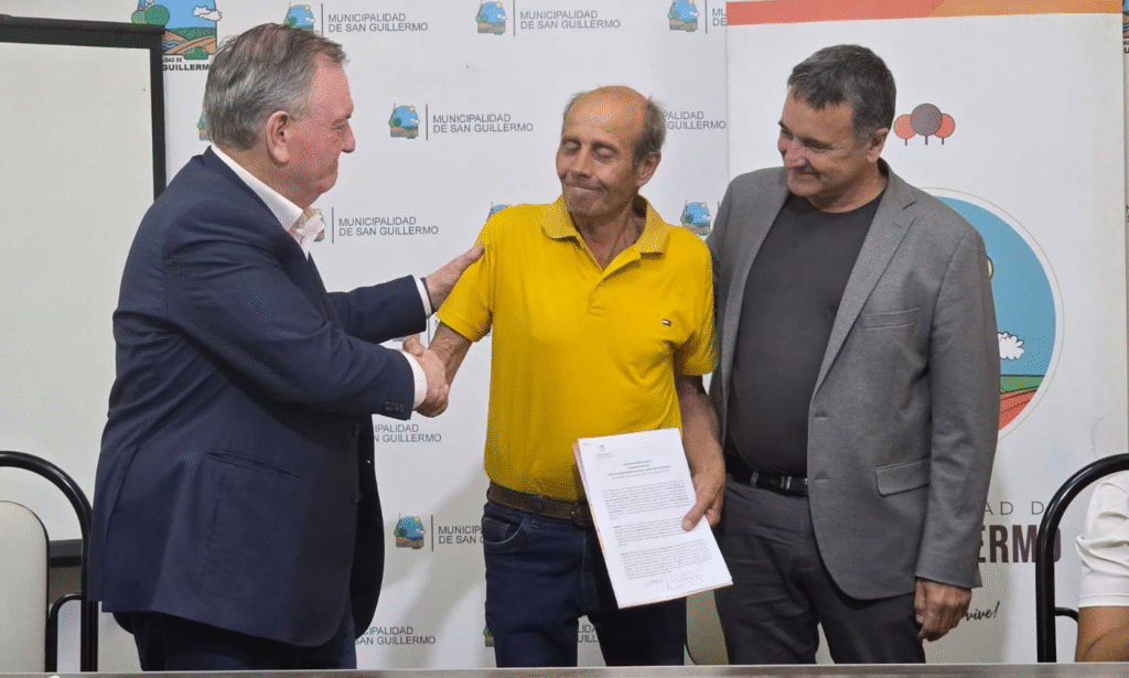 El senador provincial Felipe Michlig encabezó en San Guillermo la firma de convenios del Programa de Obras Urbanas (POU) y del Programa Buenas Prácticas, acompañado por el diputado Marcelo González, la intendente Romina López, concejales, presidentes comunales del departamento San Cristóbal y entre otras autoridades locales.