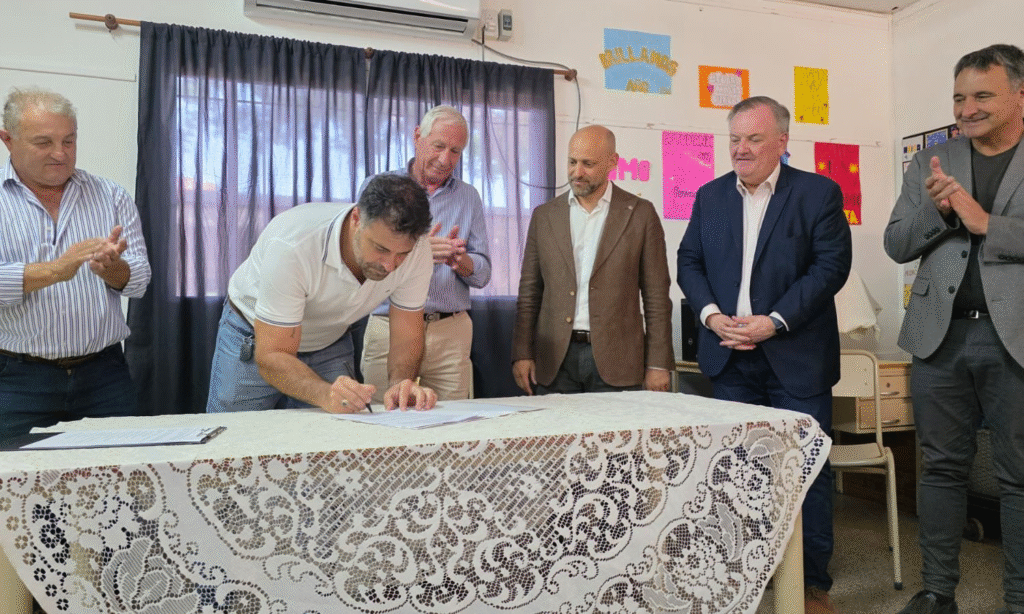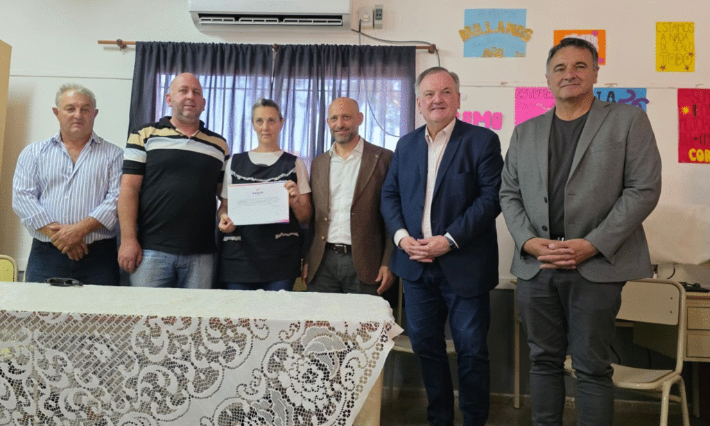 Durante el acto, se concretó la entrega de un aporte FANI de $2.500.000 al N.R.E.S. N° 1500 de Monte Oscuridad, destinado al cerramiento de la galería Norte-Sur con cortinas de enrollar.