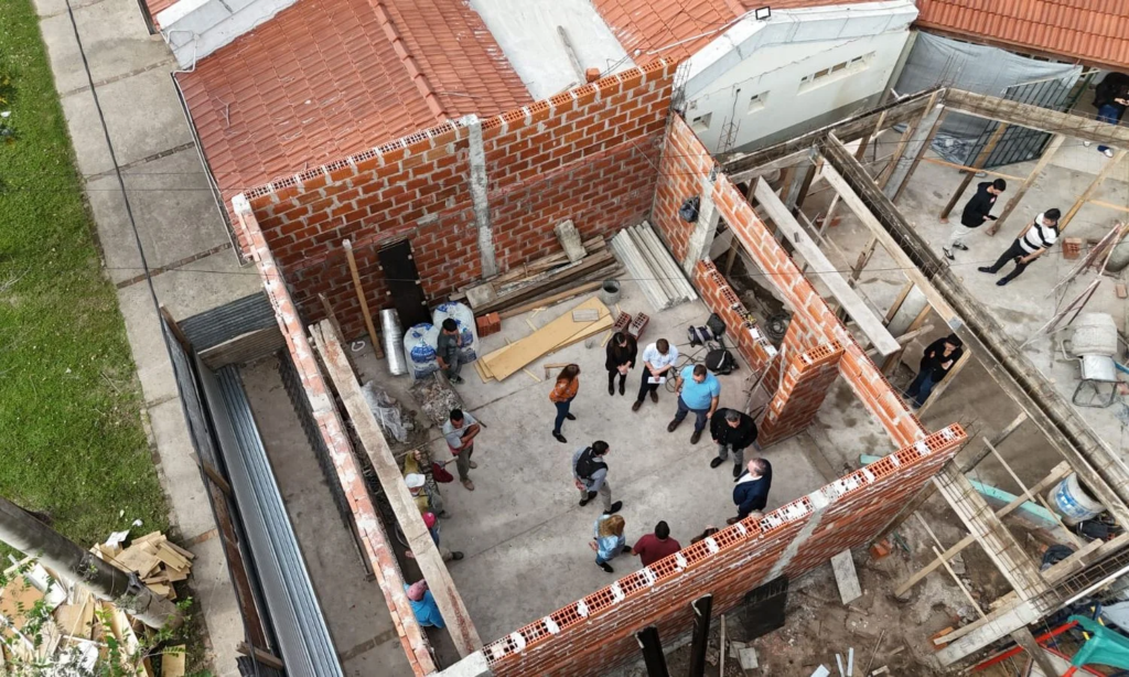 Seguidamente, las autoridades se trasladaron a la Escuela Particular Incorporada N° 1094 “Sagrada Familia”, donde recorrieron la obra de construcción de una nueva aula que el Gobierno de la Provincia de Santa Fe está ejecutando en el establecimiento.